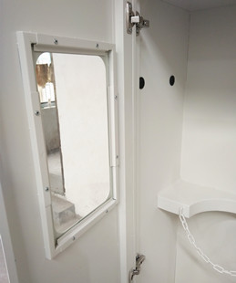 2.门板:采用可脱卸液压静音阻尼铰链,极大程度减小了开关门时的噪音;正面带视窗,视窗为防爆玻璃。